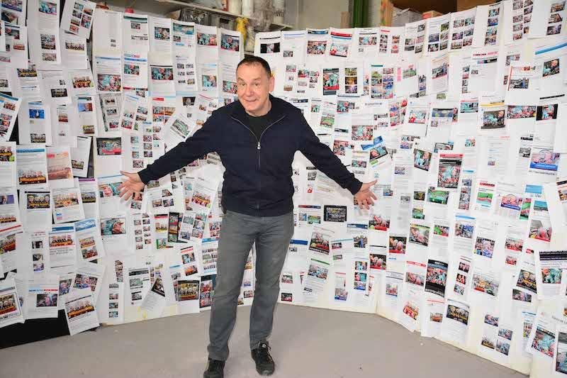 Dass der Karneval am Rosenmontag noch längst nicht vorbei ist, kann man derzeit sowohl in London als auch in Prag sehen: Während in der englischen Metropole der „Brexit“-Wagen von Jacques Tilly und seinem Team durch die Straßen zieht, sorgt in der tschechischen Hauptstadt der Mottowagen mit dem Motiv „Schädlinge der Demokratie“ für Furore. Mehr noch: Im Rahmen einer großen Pressekonferenz in der Wagenbauhalle dokumentierten Jacques Tilly, CC-Geschäftsführer Hans-Jürgen Tüllmann und Frank Schrader von der Düsseldorf Tourismus GmbH die überragende nationale und internationale Medienbilanz der Mottowagen bzw. des gesamten Düsseldorfer Karnevals. Auf einer ca. 12 Meter langen und 2,30 m hohen Stellwand präsentierte Tilly mehr als 600 Wagenabbildungen (2016: 410), die in 76 Ländern der Erde (!!!) veröffentlicht worden waren. Die meisten Publikationen (90) wurden in den USA registriert, dahinter folgen Frankreich und Polen (je 43), Holland (40), England (32), Ukraine (27), Mexiko und Russland (je 25). Besonders beliebt waren die beiden Trump-Wagen und die Motive über die polnische Regierung, den Brexit und die neuen Rechtspopulisten unter dem Motto „Blond ist das neue Braun“.