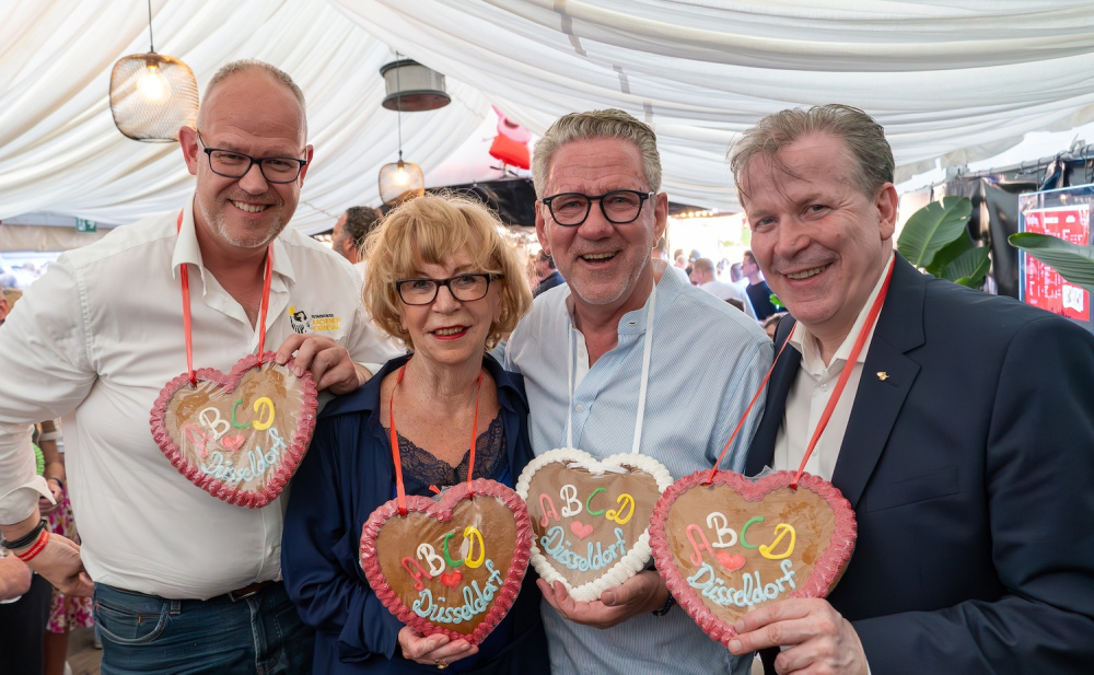 Einmal im Jahr treffen sich die Festkomitees der vier rheinischen Karnevalshochburgen Aachen, Bonn, Colonia/Köln und Düsseldorf – die sogenannte ABCD-Gruppe – turnusmäßig zu einem informellen Gedankenaustausch. Diesmal überraschte CC-Präsident Lothar Hörning die Delegationen mit den Präsidenten Frank Prömpeler (Aachen), Marlies Stockhorst (Bonn) und Christoph Kuckelkorn (Köln) an der Spitze mit einer Location der besonderen Art: Für fünf Stunden wurde die Rheinkirmes zum Schauplatz des karnevalistischen Gipfeltreffens. Begleitet von der Jägerkapelle Straberg durften die Karnevalisten auf einem ausgedehnten Rundgang einige der vielen Attraktionen hautnah erleben. Das vom CC arrangierte Unterhaltungsprogramm reichte von Riesenrad-, Karussell- und Achterbahnfahrten bis hin zum Genuss typischer Kirmes-Spezialitäten. Am Ende der Exkursion gab es in gemütlicher Runde neben nachdrücklichen Bekenntnissen zu den gemeinsamen Zielen auch viel Lob für die Gastgeber. „Wir 4 sind die Zugpferde, die den Karneval nach vorne bringen“, betonte beispielsweise Frank Prömpeler. Christoph Kuckelkorn stimmte neben Helau- und Alaaf-Rufen auch ein Hoch auf die Gastgeber an und betonte die Vorbildfunktion dieser Rheinschiene: „Es gibt, sagte er, „nur wenige gesellschaftliche Konstrukte, die das so leben wie wir.“ Marlies Stockhorst schließlich bekundete ihren Stolz, zu diesem Team zu gehören und dankte dem CC für dieses Treffen, mit dem der neugewählte Präsident sein erstes Meisterstück vollbracht habe. Präsident Hörning dankte für die netten Worte und die Gastgeschenke und revanchierte sich mit speziell gestalteten Lebkuchenherzen. Gleichzeitig sprach Hörning die nächste Einladung aus: „Zum Auftakt der 200-Jahr-Feier des Düsseldorfer Karnevals sehen wir uns Anfang kommenden Jahres wieder!“