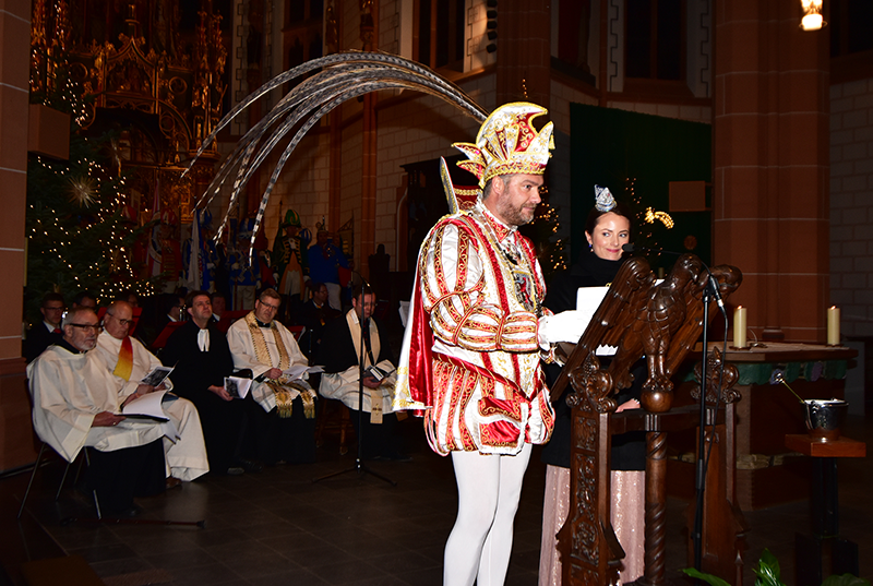90 heitere, besinnliche und andächtige Minuten bescherte der traditionelle Gottesdienst des Comitee Düsseldorfer Carneval e.V. den zahlreichen Vertretern der angeschlossenen Vereine in der katholischen Kirche St. Peter. Zum 20. Mal hatte die Dachorganisation des Düsseldorfer Karnevals dazu eingeladen, sich mit Gottes Wort auf eine fröhliche Session einzustimmen. Unter den Gästen waren neben vielen Prinzenpaaren und Kinderprinzenpaaren auch Prinz Carsten II. und Venetia Yvonne, das Prinzenpaar der Landeshauptstadt Düsseldorf.